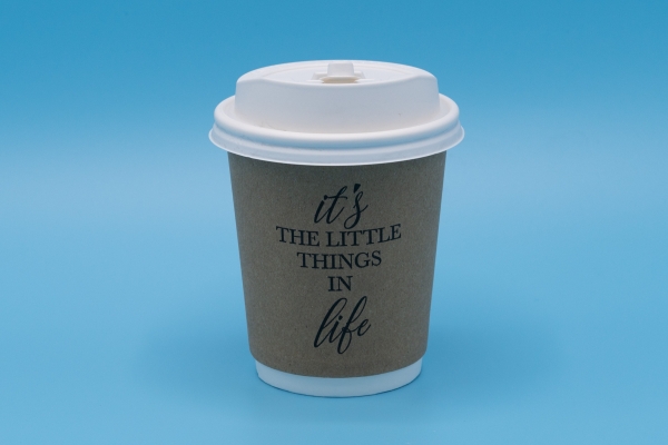 แก้ว ขนาด 8 ออนซ์ สำหรับเครื่องดื่มร้อน เช่น ชา กาแฟ ผลิตจาก กระดาษเคลือบผิว PE หรือ กระดาษ BioPBS ที่ได้มาตรฐานความปลอดภัย food grade